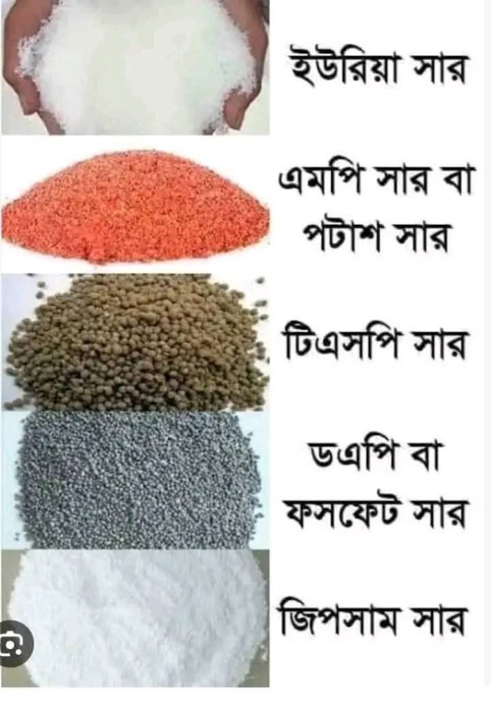 #কোন সারের কি কাজ:আমরা কৃষি জমিতে সবাই বিভিন্ন রকম সার ব্যবহার করি। কিন্তু কোন সার ফসলের জন্য কি কাজ করে তা আমরা অনেকে জানি আবার জানি না, এমনকি জানার চেষ্টাও করিনা। কিন্তু ভাল ফসল উৎপাদনের জন্য এটা জানা খুবই জরুরী। নিচে কোন প্রকার রাসায়নিক সারের কি কাজ তা সংক্ষেপে তুলে ধরলাম। #ইউরিয়াঃইউরিয়া সার গাছের ডালপালা, কান্ড ও পত্রের বৃদ্ধি সাধন করে। এই সার গাছপালাকে গাঢ় সবুজ রং প্রদান করে। এর নাইট্রোজেন পাতার সবুজ কণিকা বা ক্লোরফিলের একটি অবিচ্ছেদ্য অংশ এবং উদ্ভিদের প্রোটিন উৎপাদনে সহায়তা করে।#টিএসপিঃটিএসপি, ডিএপি বা ফসফেট জাতীয় সারের ফসফরাস গাছের প্রথম পর্যায়ের বৃদ্ধি ত্বরান্বিত করে। এছাড়া উদ্ভিদের জীবকোষের বিভাজনে অংশগ্রহণ করে এবং গাছের মূল বা শিকড়ের গঠন ও বৃদ্ধিতে সহায়তা করে। তাছাড়া সময় মতো গাছকে ফুল ও ফলে শোভিত করে এবং ফলের পরিপক্কতা ত্বরান্বিত করে। #পটাশঃএমপি সার বা পটাশ সারের পটাশিয়াম পাতার ক্লোরফিল তৈরির অবিচ্ছেদ্য অংশ যা শর্করা প্রস্তুতিতে সহায়তা এবং সেগুলির দেহাভ্যন্তরে চলাচলের পথ সুগম করে। এই সার নাইট্রোজেনের কার্যকারিতার পরিপূরক এবং পোকামাকড় ও রোগবালাই থেকে গাছকে রক্ষা করে। এই সার গাছের খরা সহিঞ্চুতা বাড়ায়, গাছকে মজবুত করে।#জিপসামঃজিপসাম সারের মধ্যে থাকা সালফার নাইট্রোজেন আত্মকরণে সহায়তা করে। এই সার প্রোটিন প্রস্তুতিতে অংশ গ্রহণ করে, তেল উৎপাদন ক্ষমতা বৃদ্ধি করে এবং সালফার ভিটামিন ও কো-এনজাইমের উপাদান তৈরিতে ব্যবহৃত হয়। #জিংক_সালফেটঃজিংক সালফেটের জিংক প্রোটিন প্রস্তুতিতে সহায়তা করে এবং হরমোনের কার্যকারিতার জন্য সহায়তা করে।#বোরাক্সঃবোরাক্সের বোরন ফলের বিকৃতি রোধ করে এবং ফুল ফল ধারণে সাহায্য করে।ধন্যবাদ সবাইকে।