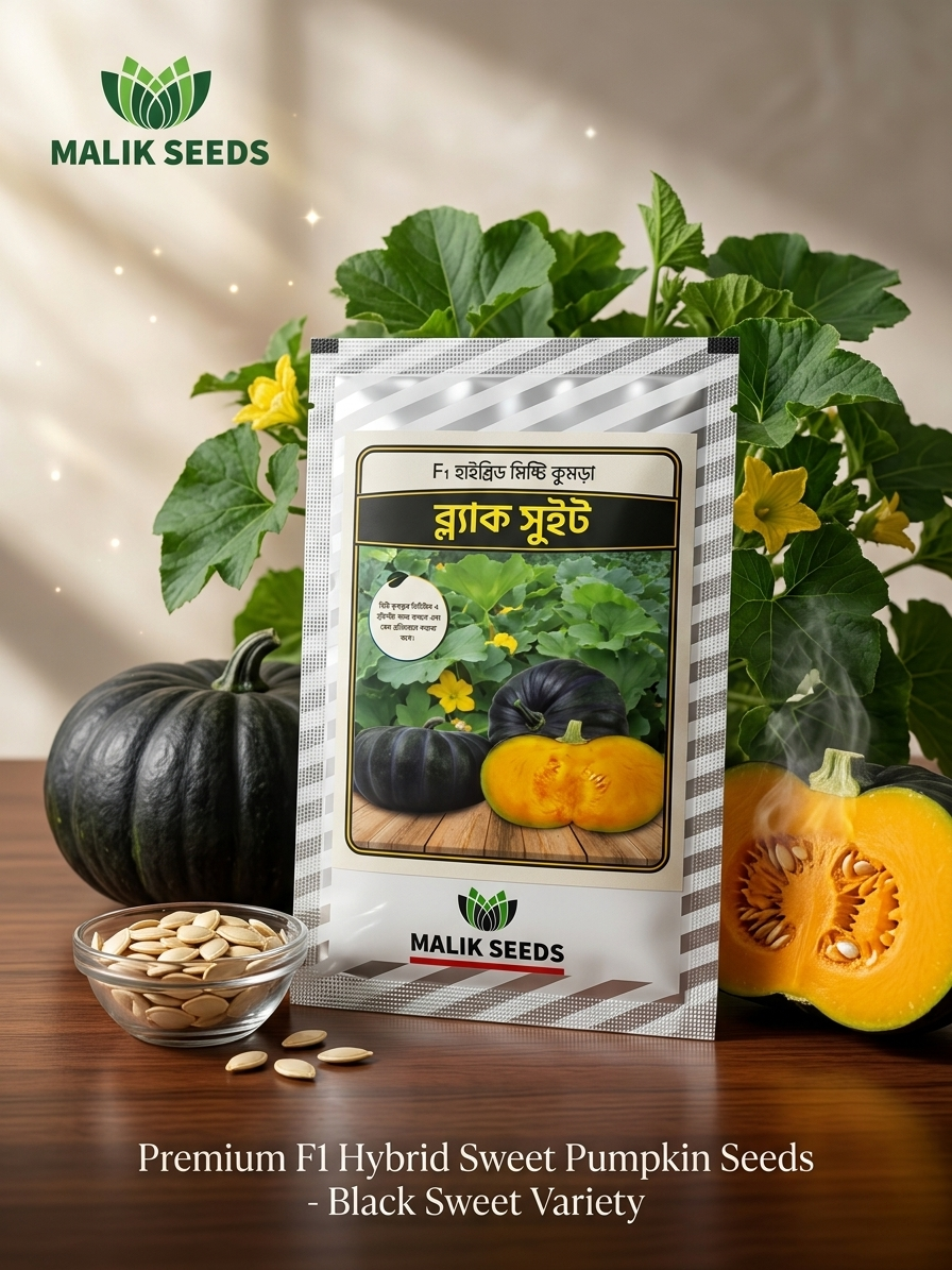 The Black Sweet F1 Hybrid is a premium variety of sweet pumpkin from Malik Seeds, specifically engineered for high yield and excellent fruit quality. This variety is highly sought after by commercial growers and home gardeners alike for its unique dark skin and superior taste.